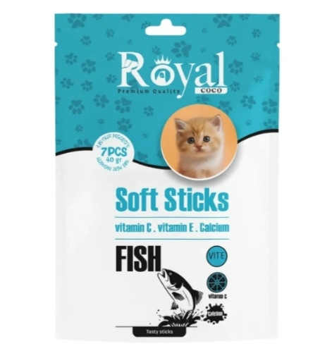 💊اسنک تشویقی مدادی نرم گربه رویال کوکو با طعم ماهی بسته 7 عددی