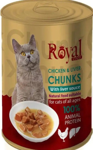 کنسرو چانک گربه رویال کوکوطعم مرغ و جگر در سس جگر بافت تکه ای 380 گرم